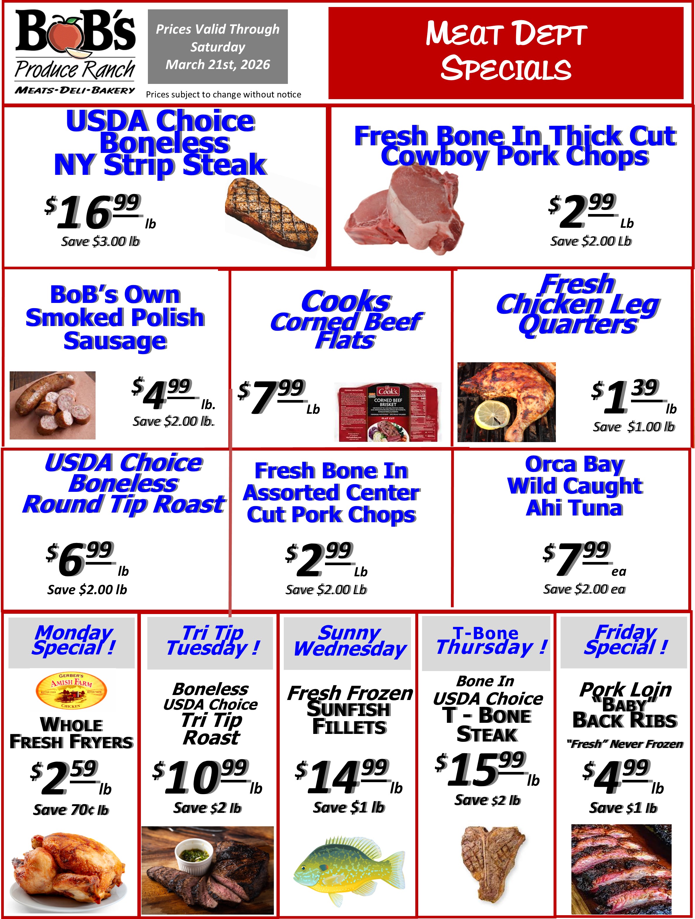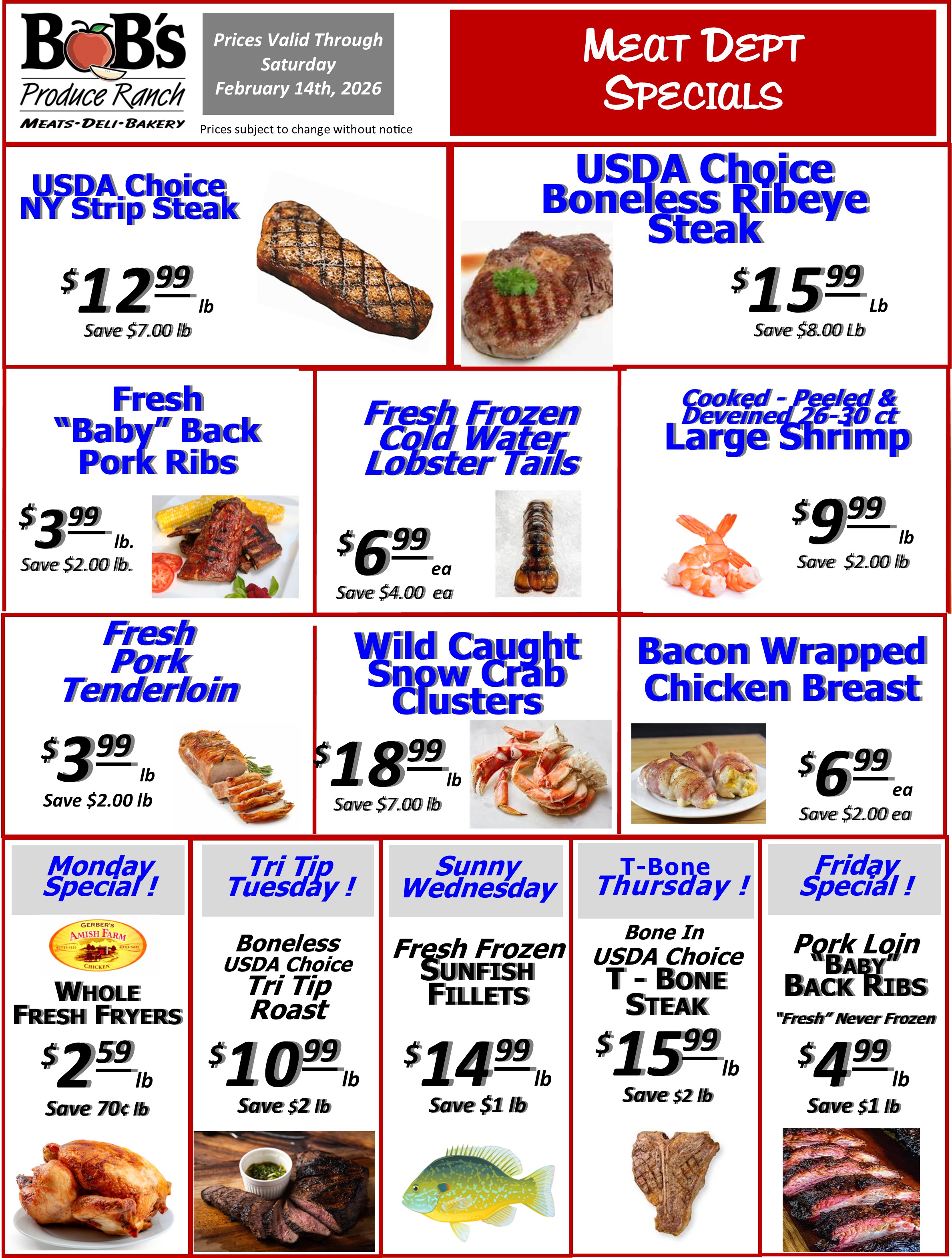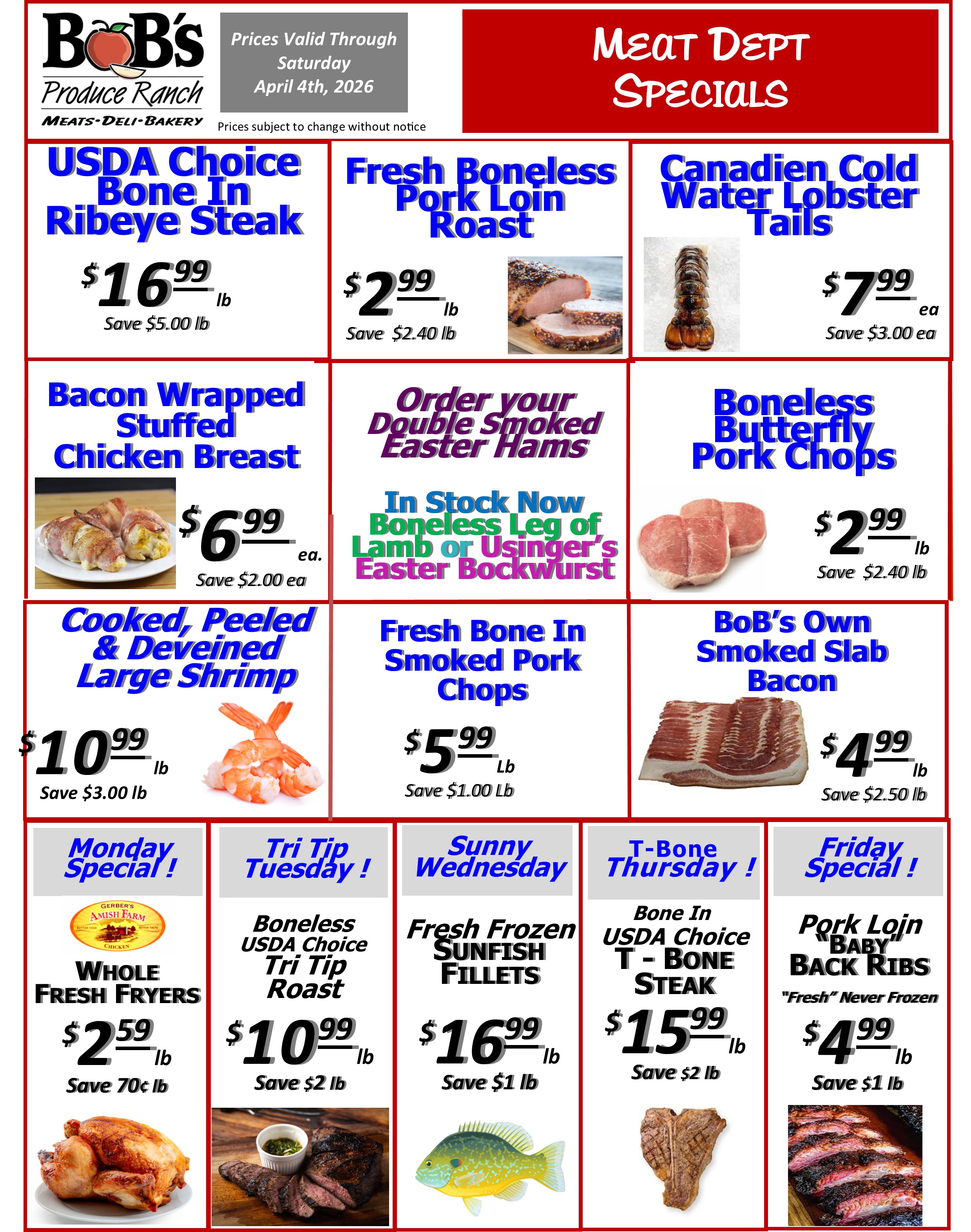 BoB's Weekly Specials
