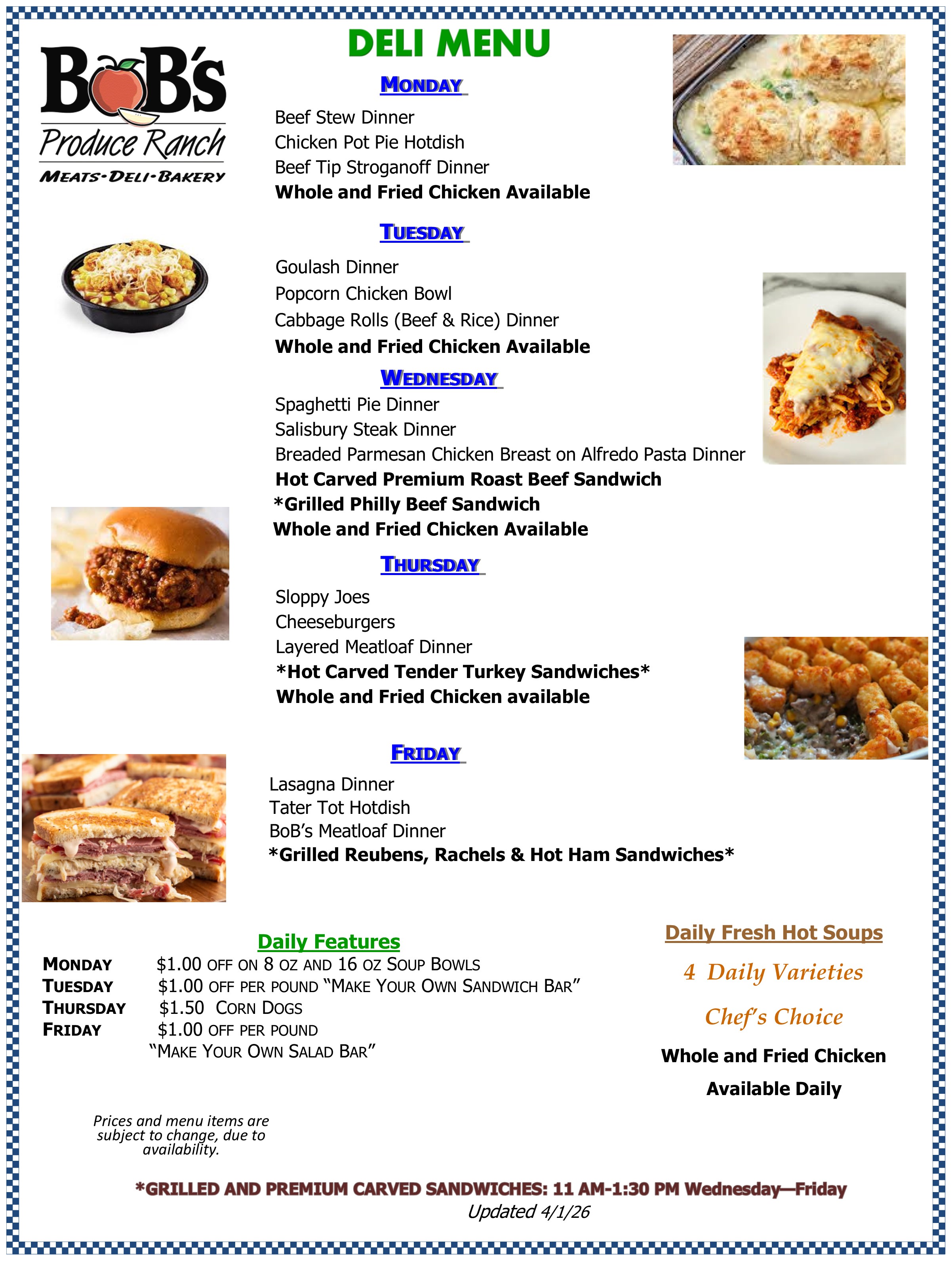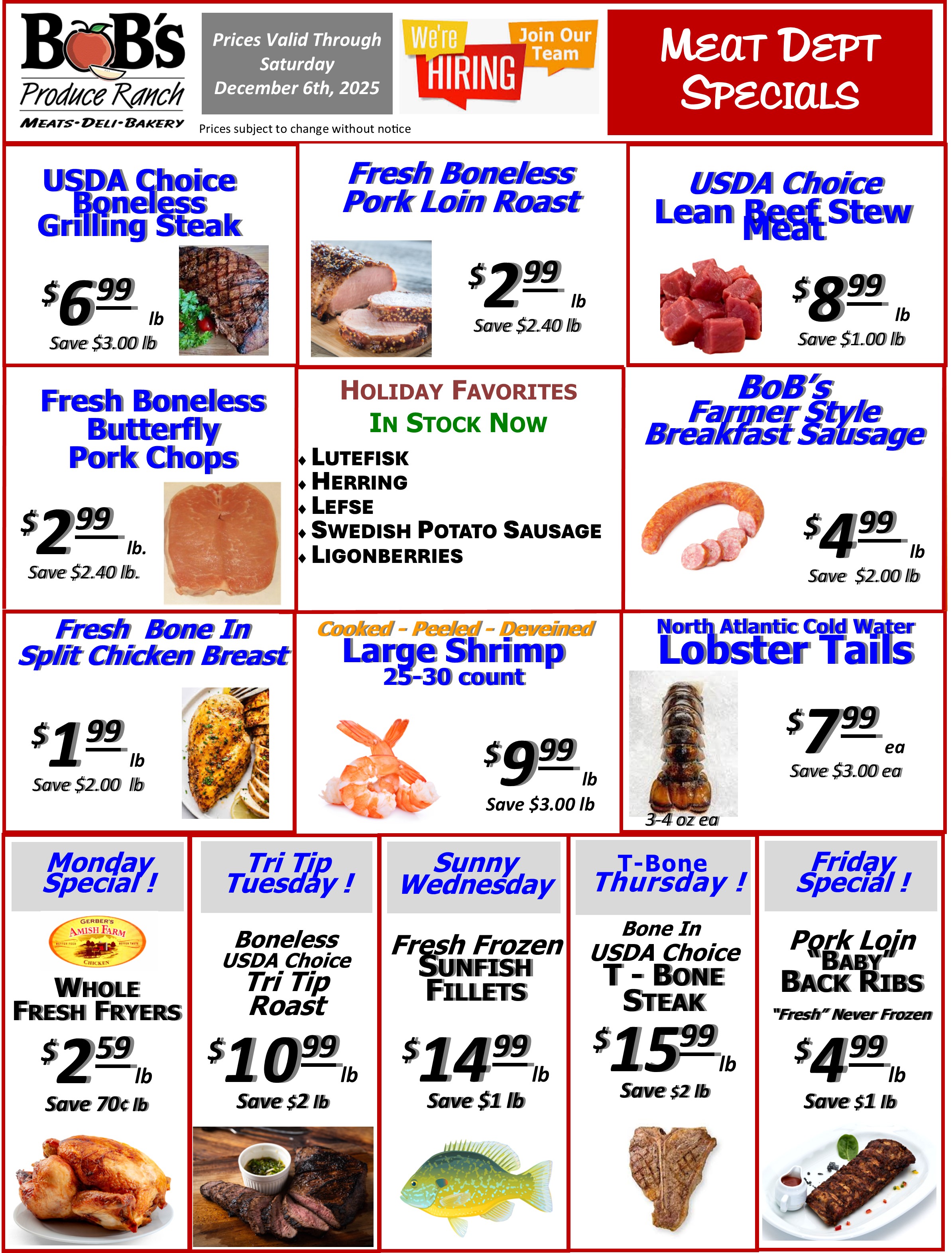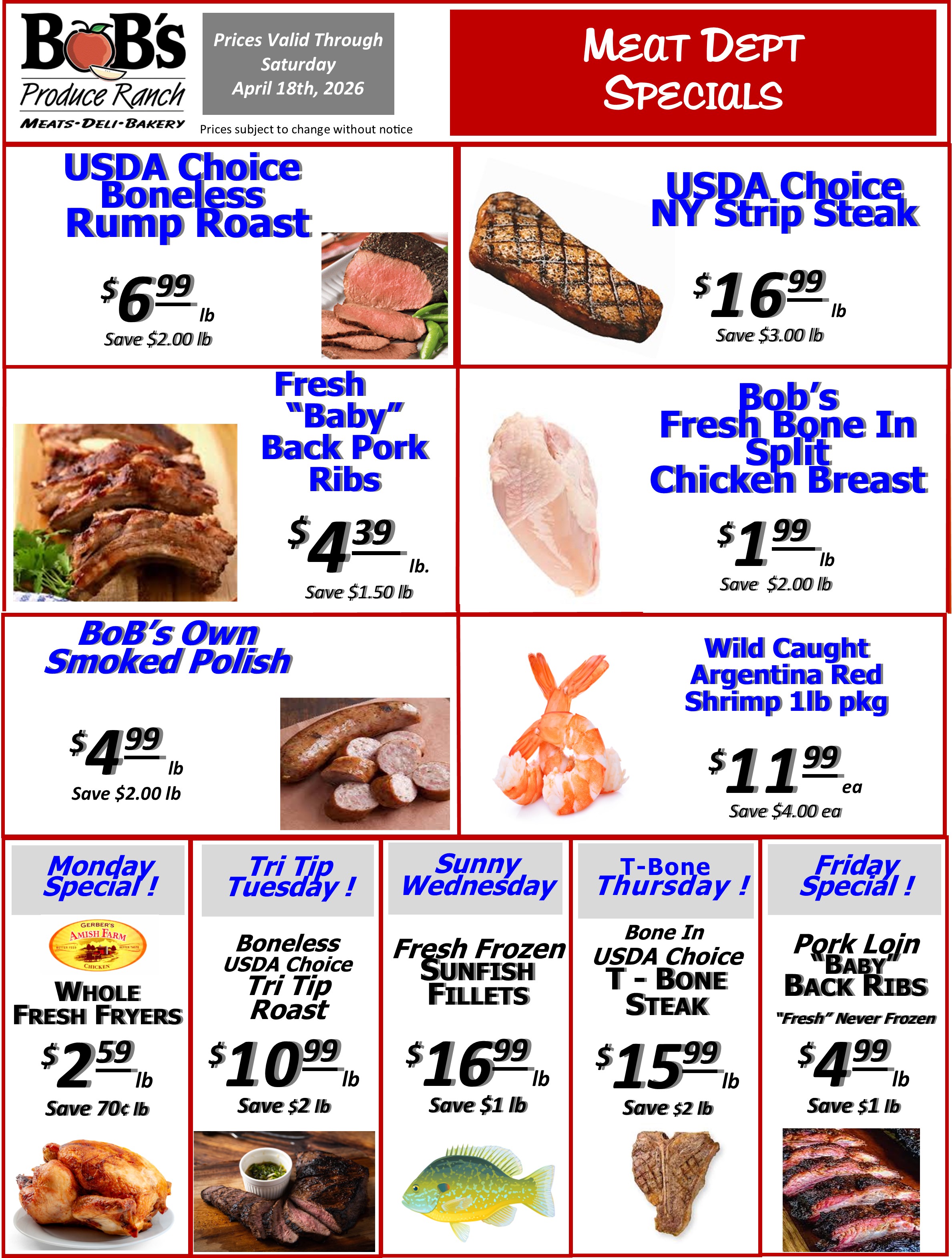 BoB's Weekly Specials